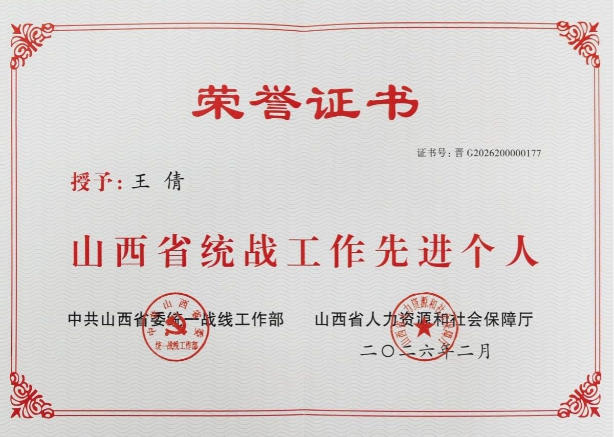 近日,山西省委统战部、山西省人力资源和社会保障厅发布表彰决定,授予一批在全省统一战线工作中表现突出的先进集体与个人荣誉称号。我校法律系党委副书记王倩光荣获评“山西省统战工作先进个人”。